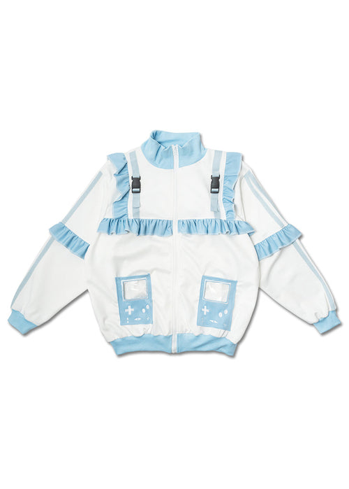 Game Over Frill Pastel Blue Jersey Oversized Jacket