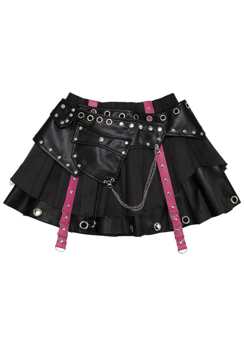 Drip Heart Harness Black Pleated Skirt